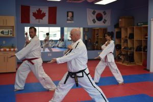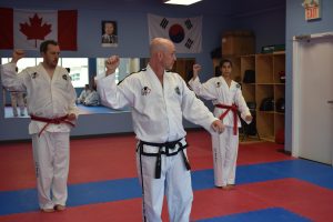 Master Alvey was having fairly good success there so he decided to open a private location and invite all his students to train at one central dojang. It was then called Chon-Ji Taekwon-Do. At its peak, Chon-Ji Taekwon-Do had close to 100 students. Master Alvey would eventually sell that location to one of his students and relocate back to Ontario after living on the West Coast for 16 years. Since being back in Hamilton Master Alvey has taught out of four locations. He started out in a small studio but due to growth he moved twice to larger locations. He did close for ten months because of a health issue and thought he actually might retire from teaching. But, Taekwon-Do being so important to him, retirement didn’t last long. He reopened three years ago at his current location.