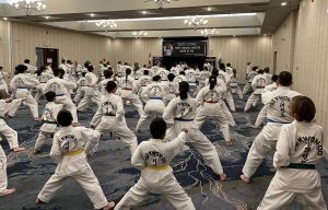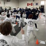 There were 90 instructors and students from Oakville, London, Waterdown, Mississauga and the New York in attendance. The seminar began with an intensive warm-up and moved right into basic movements, patterns, step sparring, and self defence.
